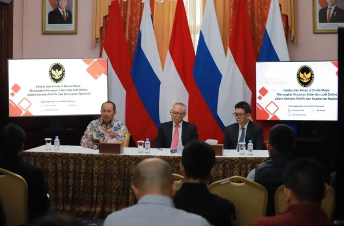 Usai mengikuti forum, Deputi Eko D. Indarto menggelar dialog khusus bersama Masyarakat Indonesia di Luar Negeri (MILN) di Moskow, dengan tema “Cerdas dan Aman di Dunia Maya: Menangkal Ancaman Siber dan Judi Online dalam Konteks Politik dan Keamanan Nasional.”