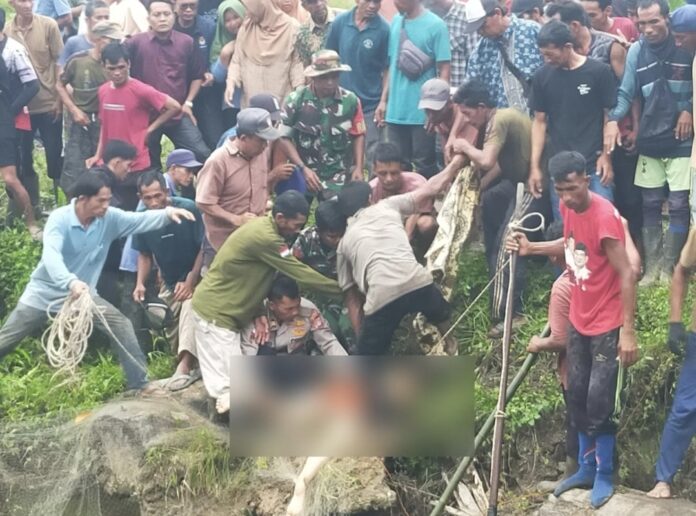 Sekitar pukul 14.30 WIB, korban ditemukan di pinggir sungai dalam kondisi berada di mulut buaya. Dengan peralatan seadanya, warga dan aparat berhasil mengevakuasi jasad korban.